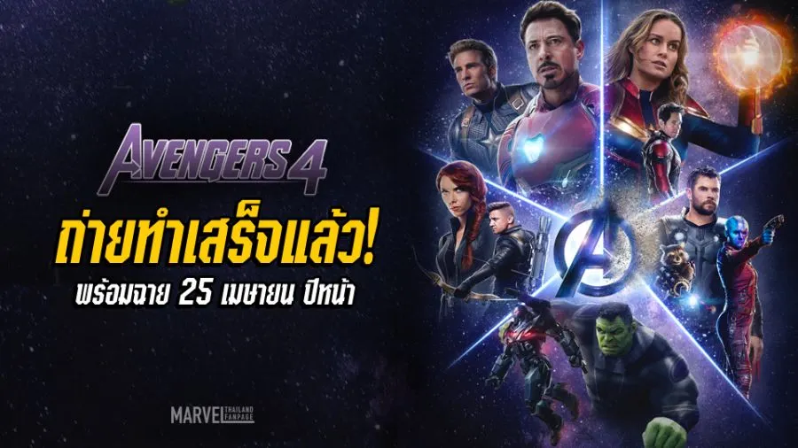 พี่น้อง Russo ผู้กำกับ Avengers: Infinity War ได้โพสต์ภาพแสงปริศนา พร้อมข้อความแฮชแท็กว่า "ปิดกล้องแล้ว" ซึ่งหมายถึง #Avengers4 ที่เพิ่งถ่ายซ่อมไป น่าติดตามมากๆว่าบทสรุปของเรื่องราวทั้งหมดกว่า 20 เรื่อง ในตลอดระยะเวลา 10 ปี จะเป็นเช่นไรต่อไป ใครต้องจากลา ใครต้องอยู่และไป หนังมีกำหนดเข้าฉายในไทย 25 เมษายน ปีหน้า