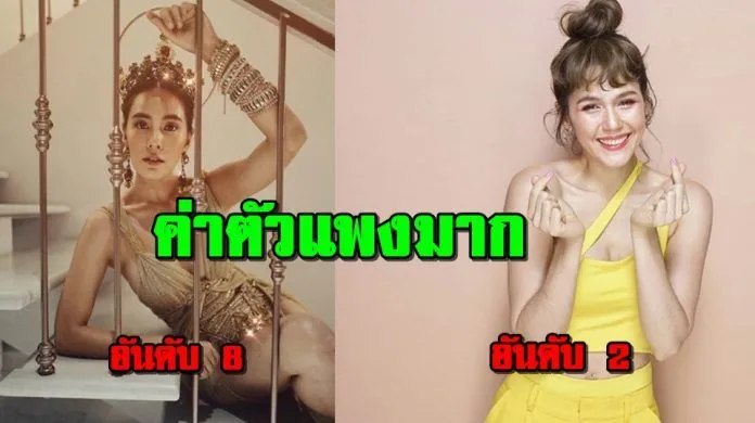 อันดับ 1 “อั้ม พัชราภา” มีค่าตัวในการเล่นละครประมาณ 1.5 แสนบาท/ตอน, ค่าตัวในการออกงานอีเวนท์ประมาณ 1.5 แสนบาท/ครั้ง และค่าโฆษณาประมาณ 8.6 ล้านบาท/ชิ้น