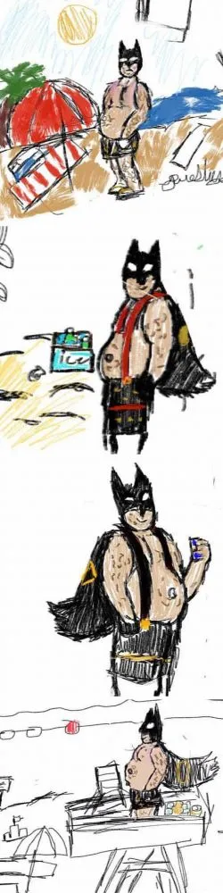 5. เด็กน้อยวัย 11 ขวบ วาดรูปแบทแมนที่ดูแก่ อ้วนลงพุง อยู่บนชายหาด จินตนาการได้ล้ำเลิศมาก