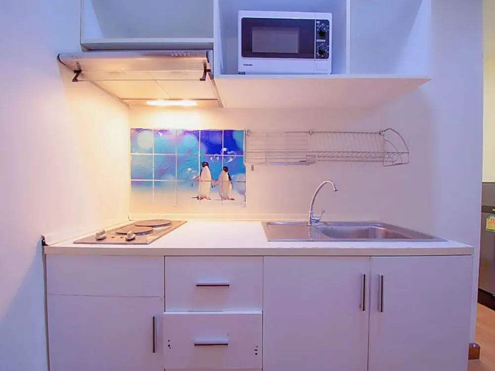 * ตู้ครัวบิ้วท์อินพร้อม เตาไฟฟ้า ที่ดูดควัน ไมโครเวฟและตู้เย็น