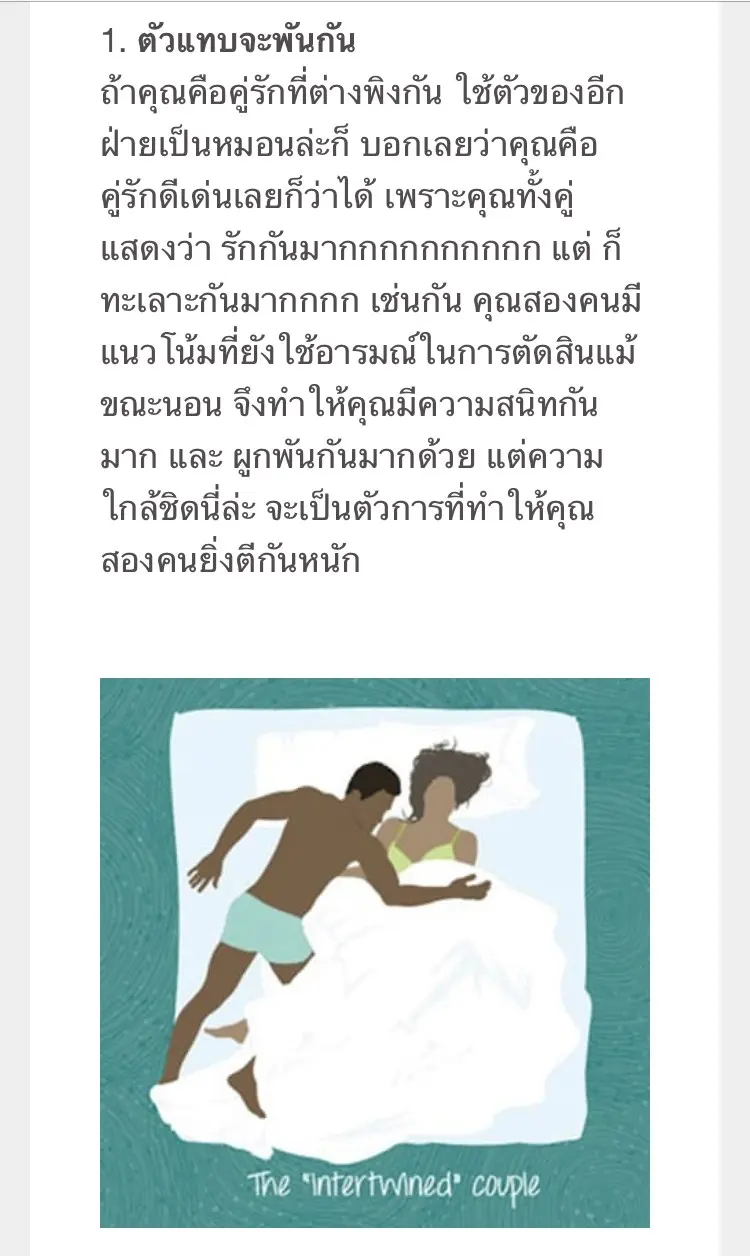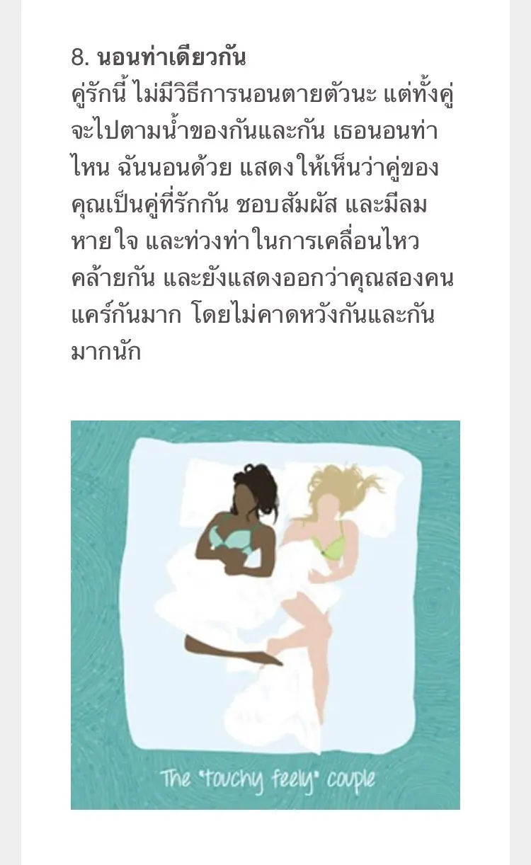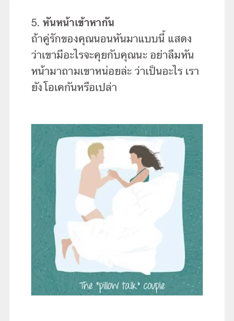 เปิด "8 ท่านอน" "บอกความสัมพันธ์" ลึกๆ ที่แฟนมีให้คุณ