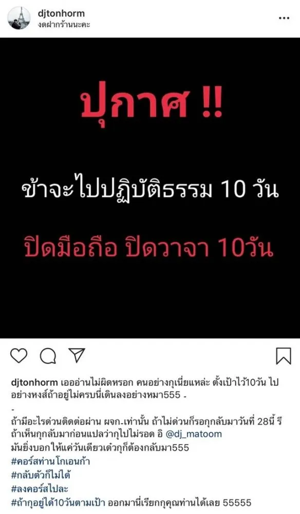 ดีเจต้นหอม โพสต์ไอจี ขอละทางโลกชั่วคราว
