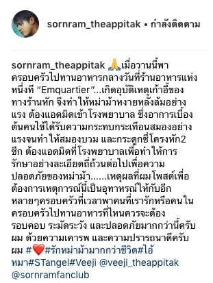 น่าตกใจอยู่ไม่น้อย เมื่อจู่ๆ”หนุ่ม ศรราม”ออมาโพสต์เตือนนในอินสตาแกรมว่า”เมื่อวานนี้พาครอบครัวไปทานอาหารกลางวันที่ร้านอาหารแห่งหนึ่งที “Emquartier”…เกิดอุบัติเหตุเก้าอี้ของทางร้านหัก จึงทำให้หม่าม้าหงายหลังล้มอย่างแรง ต้องแอดมิดเข้าโรงพยาบาล ซึ่งอาการเบื้องต้นคนไข้ได้รับความกระทบกระเทือนสมองอย่างแรงจนทำให้สมองบวม และกระดูกซี่โครงหัก2 ซีก ต้องแอดมิดที่โรงพยาบาลเพื่อทำให้การรักษาอย่างละเอียดถี่ถ้วนต่อไปเพื่อความปลอดภัยของหม่าม้า……เหตุผลที่ผมโพสต์เพื่อ ต้องการเหตุการณ์นี้เป็นอุทาหรณ์ให้กับอีกหลายๆครอบครัวที่เวลาพาคนที่เรารักหรือคนในครอบครัวไปทานอาหารที่ไหนควรจะต้องรอบคอบ ระมัดระวัง และปลอดภัยมากกว่านี้ครับผม ด้วยความเคารพ และความปรารถนาดีครับผม”