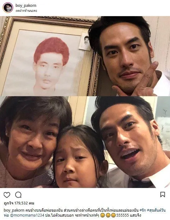 เชื่อว่าใครหลายๆคนคงรู้จักพระเอกหนุ่มคนนี้ “บอย ปกรณ์” ที่ผลงานการแสดงมากมาย หลายเรื่องให้เราได้ติดตามชมกัน และแน่นอนว่าถ้าใครได้ติดตามในไอจีของหนุ่มบอยนั้น คือจะหนุ่มลงรูปครอบครัวอยู่บ่อยๆ แต่น้อยคนมากที่จะเคยเห็นพ่อแท้ๆของหนุ่มบอย เพราะท่านได้เสียก่อนที่ “บอย ปกรณ์” จะเข้ามาทำงานในวงการบันเทิงซะอีก วันนี้เราก็นำรูปภาพคุณพ่อของหนุ่มบอยมาฝากกัน บอกได้เลยว่า ไม่แปลกใจเลยทำไมลูกหน้าตาดีกันทั้งบ้าน เพราะคุณพ่อก็หล่อไม่เบา