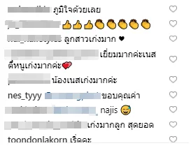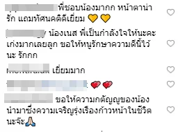 ทั้งนี้แฟนคลับต่างเข้ามาแสดงความยินดีและชื่นชมเป็นอย่างมาก ที่เด็กตัวแค่นี้ที่มีความสารถที่เด่นชัดจนผู้ใหญ่หลายๆคนให้โอกาสและทำให้น้องเนสได้มีวันนี้ ภูมิใจแทนครอบครัวจริงๆ