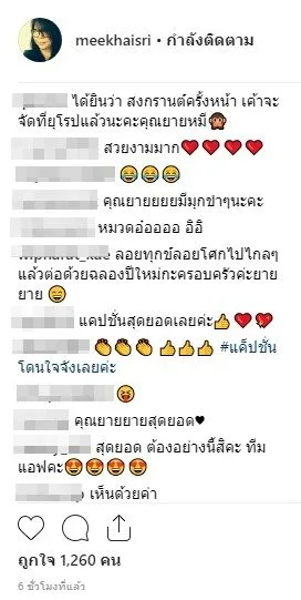 แต่ล่าสุด แม่เลี้ยง สาวแอฟ โพสต์ภาพลงไอจี แซ่บมากๆ โดยเป็นภาพ สาวแอฟ ในชุดไทยสวยงาม กำลังถือกระทง พร้อมแคปชั่นว่า “สงกรานต์ผ่านไปแล้ว เดือนหน้าชวนมาลอยกระทงกันนะจ๊ะ อ้ออีกไม่นานรอฉลองปีใหม่ด้วยน้า” โดยมีแฟนคลับและชาวเน็ตเข้าไปแห่กดไลก์ พร้อมทั้งคอมเมนต์กันสนั่นไอจี บ้างก็ว่า ยายแซ่บมาก , ได้ใจค่ะคุณแม่ , คุณยายปล่อยมุขตลอดเลย , แคปชั่นโดนใจ เป็นต้น