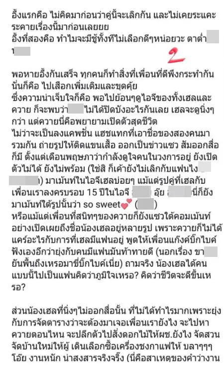 แต่กลับมีเพื่อนแฟนเก่าออกมาแฉ ถึงการคบซ้อน ระหว่าง น้ำหวาน กับหนุ่มกวาง เมื่อมีคนตามไปขุดว่า ความสัมพันธ์ของน้ำหวานและกวาง อาจมีการคบซ้อนกับอดีตแฟนสาวหล่อของฝ่ายหญิงหรือเปล่า หลังมีคนมองว่า สาวน้ำหวาน เพิ่งลงภาพครบรอบ 15 ปี กับอดีตแฟน แถม หนุ่มกวาง ยังไปร่วมคอมเมนต์ยินดีอีก