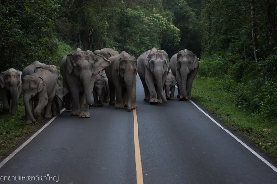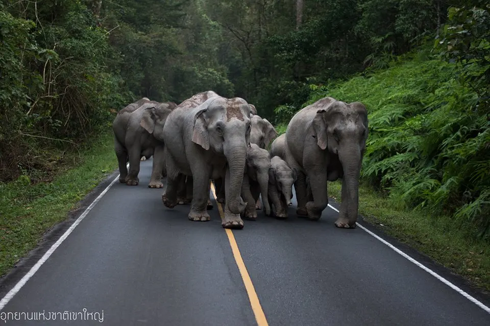 เมื่อวันที่ 23 ตุลาคม 2561 เพจ อุทยานแห่งชาติ เขาใหญเผนแพร่คลิปและภาพ โขลงช้างป่าเขาใหญ่รวมฝูงออกมาเดินบนถนน เส้นทางเข้าใหญ่เป็นภาพที่สะกดทุกสายตาจริงๆ และหาดูได้ยากมาก พร้อมฝากเตือนนักท่องเที่ยวที่ขับรถสัญจรไป-มาให้ระมัดระวัง และแนะนำว่าไม่ควรให้อาหารสัตว์ ไม่ขับรถเร็ว ไม่ส่งเสียงดังรบกวน ที่สำคัญอย่าทิ้งขยะ ไม่ก่อให้เกิดผลกระทบกับสัตว์ป่าและสิ่งแวดล้อมและให้สัตว์ป่าได้อยู่คู่กับเราไปนานๆ