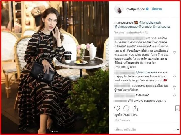 ก็มีคนเข้ามาคอมเมนต์จำนวนมากทั้งชมสาวแมทว่าสวย ทั้งบอกว่า เชื่อแมทรู้อะไรควรไม่ควร ไม่เชื่อจะเป็นไปตามกระแสข่าว ชอบผลงานแมทขอไม่ยุ่งเรื่องส่วนตัว และมีคนบอกว่า ดาราก็คนอย่าไปก้าวก่ายเรื่องส่วนตัวเค้าเลย