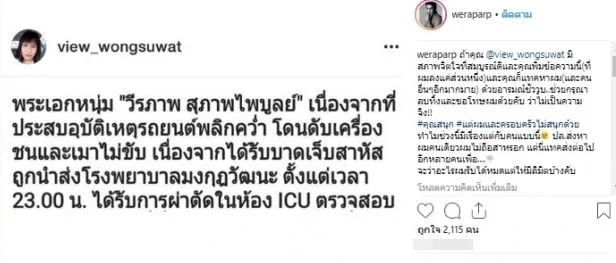 สำหรับ วีรภาพ สุภาพไพบูลย์ อารมณ์ขึ้น จนตอกกลับเกรียนคีย์บอร์ดแรงๆมาก่อน แต่สำหรับกรณีนี้น่าจะเกินไปจนสุดทนแล้วจริงๆ เมื่อมีแอคเค้าท์ปริศนารายหนึ่ง ปล่อยข่าวว่า หนุ่มวีประสบอุบัติเหตุ ต้องถูกนำตัวส่งICU ด่วน