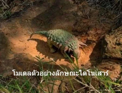 โครงกระดูกขนาดความหนา 3 นิ้ว เป็นกระดูกของตัวโดโนซอร์ (Nodosauridae) มีลักษณะ ตัวเท่าม้า อ้วน ถึก คล้ายวัวหุ้มเกราะ เป็นสัตว์กินพืชในยุคจูราสสิคตอนปลายถึงยุคครีเทเชียสตอนต้น