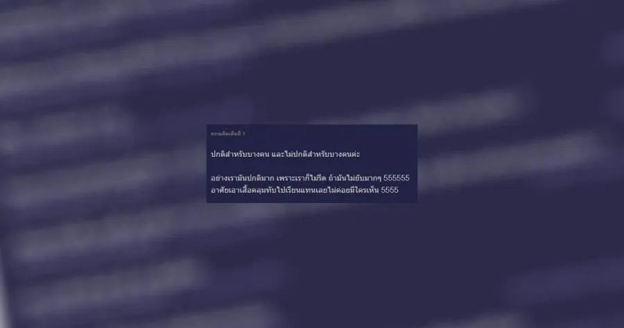“บางคนมองว่าปกติ แต่บางคนก็มองไม่ปกติ แต่สำหรับเรามันปกติมาก ถ้าไม่ยับจนเกินเยียวยาเราก็ไม่รีด อาศัยใส่เสื้อคลุมทับแทน แค่นี้ก็ไม่มีใครเห็นแล้ว 555”