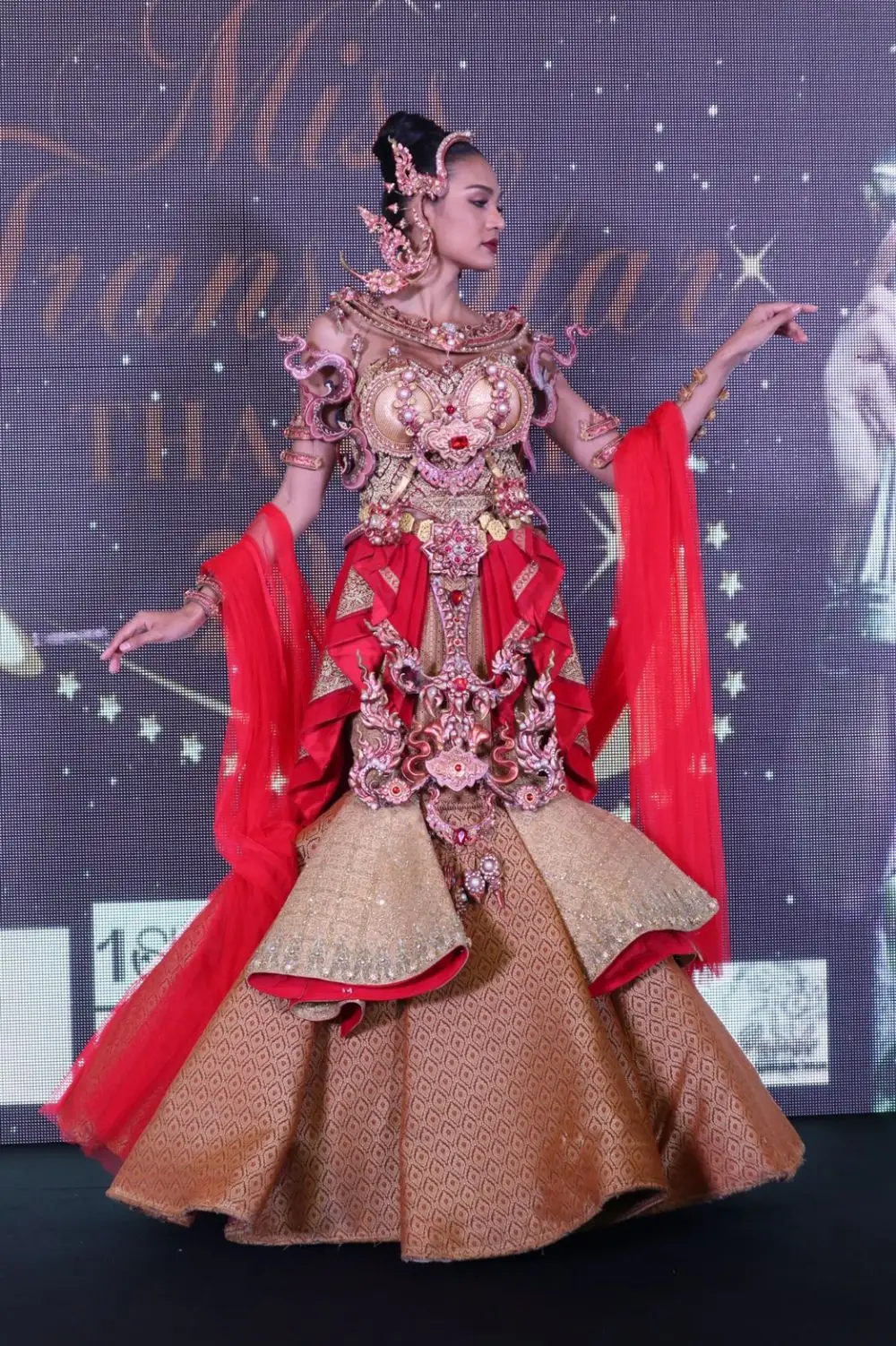 และยังมีชุดไทยประจำชาติที่เป็นอีกหนึ่งนางเอกของวันแถลงข่าวกับชุด “นางโภควดี” เทพีผู้เสียสละ ตำนานแห่งการสร้างโลก ที่เรียกเสียงฮือฮาจากคนดูได้อย่างล้นหลาม สร้างความระหงส์ให้กับสาวแคนดี้ที่จะใช้ไปแสดงเอกลักษณ์และศักยภาพของประเทศไทยในเมืองบาร์เซโลน่า ประเทศสเปน