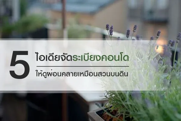 ก่อนเลือกซื้อคอนโดแต่ละแห่ง ลองสังเกตห้องที่จะซื้อด้วยว่า มีระเบียงห้องมาให้หรือไม่ หากมีไม่ต้องเป็นกังวลใจไปเลยครับ เพราะเนื้อหาชุดนี้ นำ 5 แนวทางในการจัดสวนบนระเบียงคอนโดมาฝาก แม้จะเป็นพื้นที่เพียงน้อยนิด แต่รับประกันได้ว่า ห้องคอนโดของเราจะเพิ่มความสดชื่น มีชีวิตชีวาอีกหลายเท่าตัวเลย
