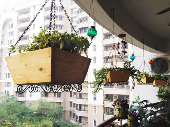 3.ยึดติดกับเพดาน ถ้าพื้นที่ขอบอาคารไม่เหลือ พื้นที่ด้านล่างก็ไม่ว่าง ก็ยังจัดสวนลอยฟ้าได้นะครับ ลองทำสวนแขวนเป็นกระถางทรงสวย ๆ ห้อยตามขอบของระเบียงดูก็เท่ไปอีกแบบ สวนแขวนแบบนี้กำลังเป็นที่นิยมในต่างประเทศ เพราะไม่ต้องเปลืองพื้นที่แนวราบ และอยู่ในระดับสายตาพอดี ทำให้ซึมซับบรรยากาศสวนได้ทันทีที่มองออกมาจากห้องพัก