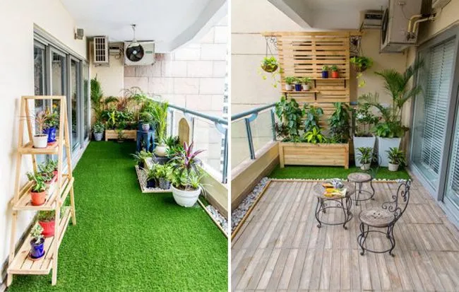 4.วัสดุปูพื้นสร้างบรรยากาศความเป็นธรรมชาติ สำหรับใครที่อยู่ใน คอนโดมือสองหรือ คอนโดให้เช่า อาจพบเจอพื้นระเบียงที่ผ่านการใช้งานมานานหลายปี ที่ดูไม่น่ามอง ลองหาวัสดุที่จะช่วยเพิ่มความเป็นสวนโดยไม่ต้องทำอะไรมาก เช่น หญ้าเทียม กรวด รั้วไม้เตี้ย ๆ หรือจะปูพื้นด้วยไม้เพื่อให้ดูเหมือนมีชานนอกบ้านนับเป็นอีกหนึ่งทางเลือกที่ดี และหากต้องการให้พื้นระเบียงมีมิติที่กว้างขึ้น แนะนำให้ใช้วัสดุที่แตกต่างกัน เพื่อใช้เป็นส่วนแบ่งโซนพื้นที่การใช้งานได้อีกด้วยครับ วัสดุปูพื้นสำเร็จรูปเหล่านี้ นอกจากจะจัดได้ง่ายแล้ว ยังช่วยลดภาระการดูแลได้ดีอีกด้วย
