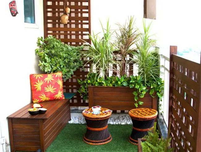 5.เฟอร์นิเจอร์ขนาดพอเหมาะ จัดสวนทั้งทีอย่าลืมแบ่งพื้นที่เอาไว้สำหรับมุมนั่งเล่น จิบกาแฟ หรือนอนอ่านหนังสือเพลิน ๆ กันนะครับ เลือกโต๊ะ เก้าอี้หรือม้านั่งให้มีขนาดพอดี ไม่ใหญ่จนเกินไป เพราะหากใหญ่ไปจะทำให้สวนดูอึดอัดมากกว่าน่าสบาย อาจจะเลือกวางโต๊ะกาแฟพร้อมเก้าอี้เล็ก ๆ วางหมอนนุ่ม ๆ เอาไว้อีกสักใบสองใบ เพิ่มความรู้สึกผ่อนคลาย แค่นี้สวนเล็ก ๆ ใน คอนโดของเราก็ให้ความสุขใหญ่ ๆ ได้เหมือนอยู่บ้าน