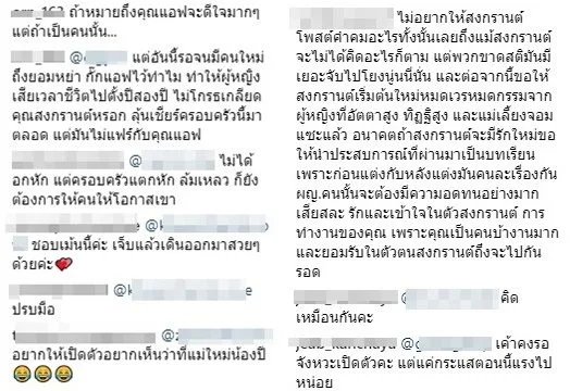 ทำเอาชาวเน็ตและกองเชียร์หลากหลายกลุ่มเข้ามาคอมเมนต์ โยงกันไปทั้งยังเชียร์ให้ไปคืนดีกับแอฟ หรือจะเป็นโอกาสจากอดีตภรรยา พร้อมเชียร์ให้กลับมาเป็นครอบครัว บ้างก็โยงไปถึง นางเอกรุ่นน้อง แมท ว่า หรือเตรียมจะเปิดตัวกับแมท แล้ว กลายเป็นประเด็นวิพากษ์วิจารณ์ในโพสต์ดังกล่าวกันอย่างมากมาย เข้าไปอีก โดยส่วนใหญ่ยังคงให้กำลังใจ หนุ่มสงกรานต์ สู้ต่อไปด้วย