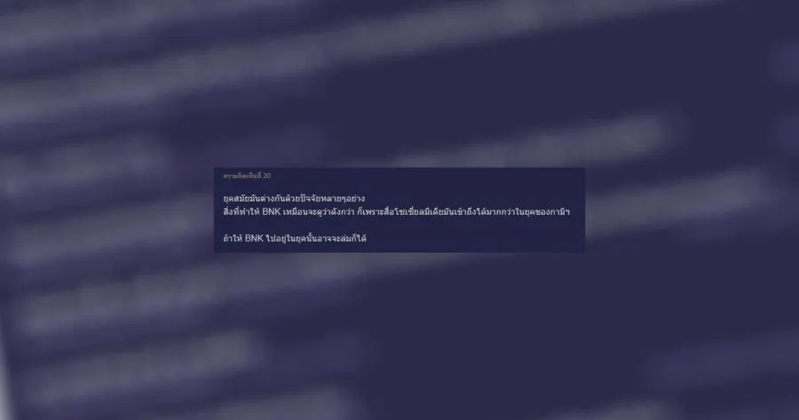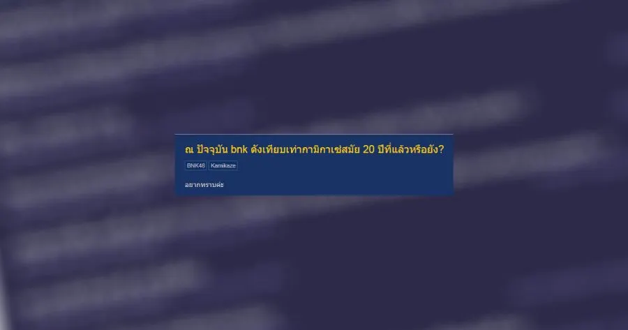 ณ ปัจจุบัน bnk ดังเทียบเท่ากามิกาเซ่สมัย 20 ปีที่แล้วหรือยัง?