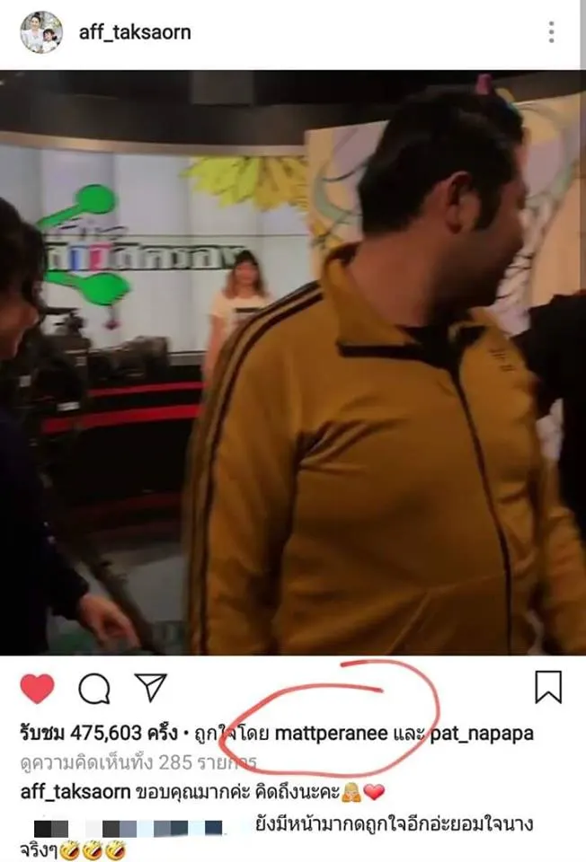 หลังจากเเมท ภีรนีย์ เคลื่อนไหว ในไอจี “เเอฟ ทักษอร”…