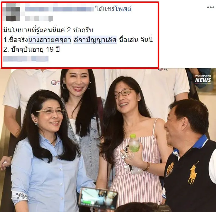 แชร์กันจนดังในชั่วข้ามคืน สำหรับภาพการปรากฏตัวของ น้องจินนี่ นางสาวยศสุดา ลีลาปัญญาเลิศลูกสาวคนสวยของ คุณหญิงสุดารัตน์ เกยุราพันธุ์ ที่เจ้าตัวเดินทางมาพร้อมกับคุณแม่ และแกนนำพรรค ลงพื้นที่รับสมัครสมาชิกพรรคและพบปะรับฟังปัญหาของผู้ค้าและประชาชน ที่ศูนย์การค้าแพลทินัม แยกประตูน้ำ เมื่อวานนี้ วันนี้เราจะพาวาร์ปไปดูความน่ารักของเธอกัน