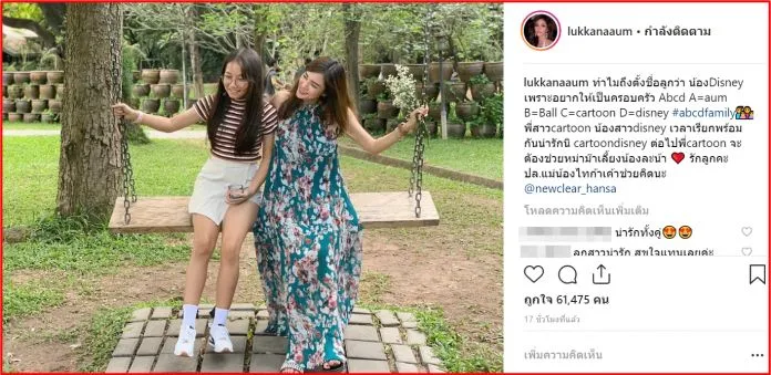 กำลังจะกลายเป็นคุณแม่มือใหม่ของวงการในอีกไม่นานนี้แล้วจ้า สำหรับนักแสดงสาวสวย สุดเซ็กซี่ “อุ้ม ลักขณา”ซึ่งโดยก่อนหน้านี้เธอได้เคยออกมาเผยชื่อลูกสาวแล้ว โดยเธอได้ตั้งชื่อว่า “น้องดิสนีย์” ล่าสุดก็ได้มีโอกาสเผยที่มาของชื่อลูกแล้ว ผ่านอินสตาแกรมว่า”ทำไมถึงตั้งชื่อลูกว่า น้อง Disney เพราะอยากให้เป็นครอบครัว Abcd A=aum B=Ball C=cartoon D=disney #abcdfamily พี่สาว cartoon น้องสาว disney เวลาเรียกพร้อมกันน่ารักนิ cartoondisney ต่อไปพี่cartoon จะตัองช่วยหม่าม๊าเลี้ยงน้องละน้า รักลูกคะ ปล.แม่น้องไทก้าเค้าช่วยคิดนะ newclear_hansa”