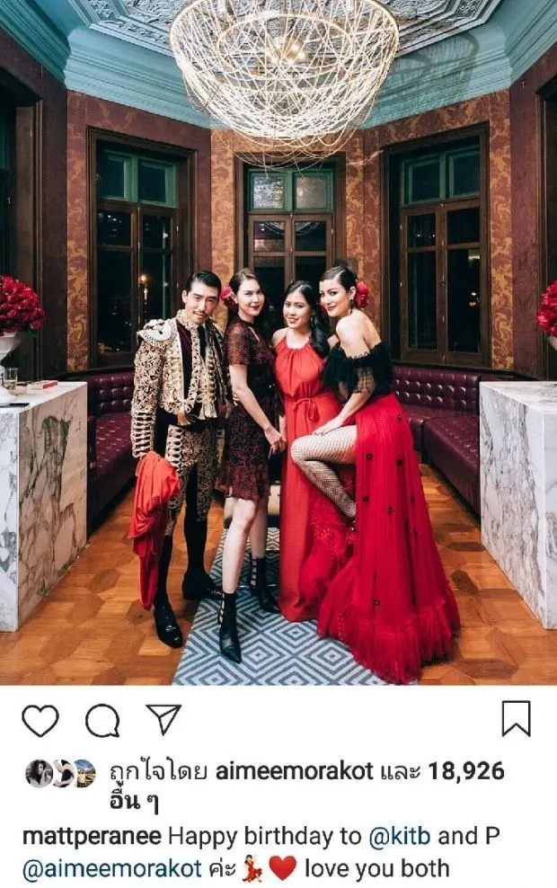 เรื่องของคู่รักป้ายแดงอย่าง แมท ภีรณีย์ และ สงกรานต์ เตชะณรงค์ แม้ว่าเวลาจะผ่านมาพักใหญ่ๆ แต่ขาเผือกทั้งหลายก็ยังคงไม่เบื่อกับการขุดการเจาะ การสืบการย้อน เรื่องราวมหากาพย์ความรักของทั้งคู่กันอยู่ดี ล่าสุดก็ขุดย้อนไปจนเจอภาพและแคปชั่นในวันที่ แมท และ สงกรานต์ เจอกันครั้งแรกในงานวันเกิด ไฮโซคิด เบญจรงคกุล และ เอมมี่ มรกต ซึ่งฝ่ายเอมมี่ออกมายอมรับเองกับปาก ให้มดดำ คชาภา ฟังเอง ว่าเค้าไปเจอกันที่งานวันเกิดชั้นนะแก!!