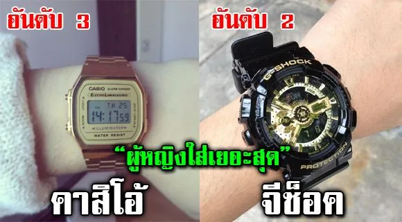 Casio สีทอง : เห็นรูปทรงที่เป็นเอกลักษณ์เเล้วนั้น หลายๆคนต้องบอกว่า หึ่ยเห็นเพื่อนๆใส่บ่อยเเน่ๆซึ่งเรียกได้ว่าเป็นตำนานเลยก็ได้นะเพราะว่าใครที่ใส่เจ้าตัวนี้ต้องบอกเลยดูดีทุกคนค่ะ