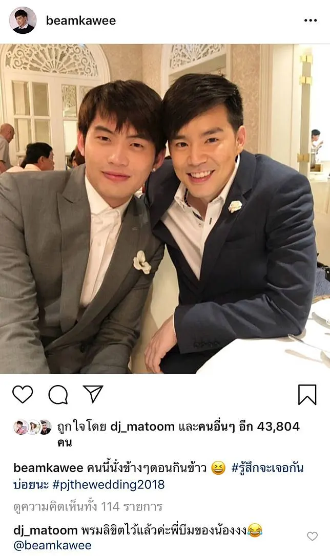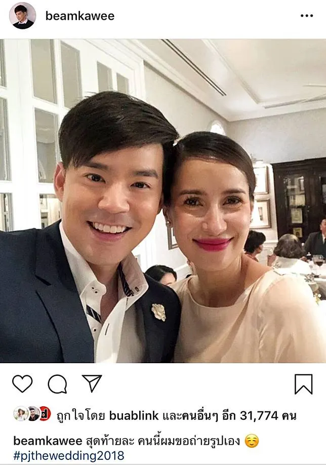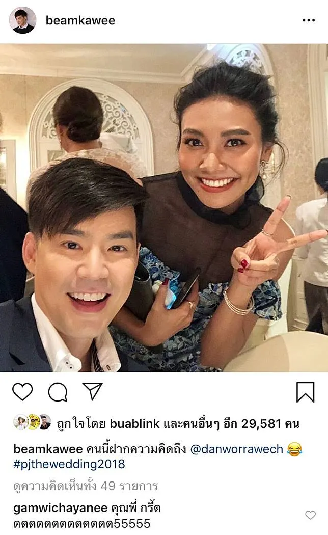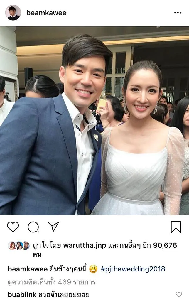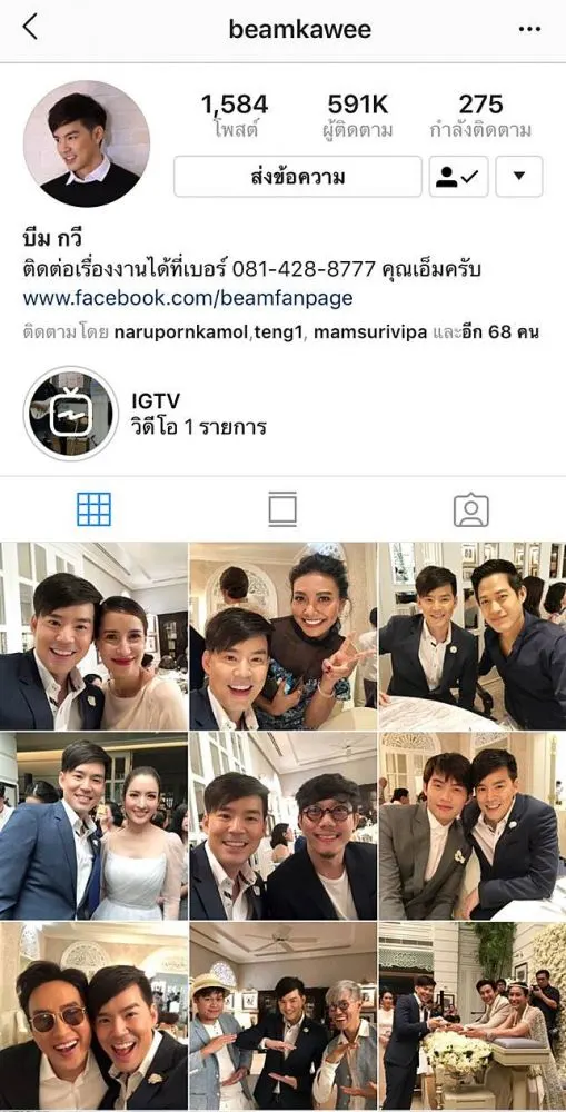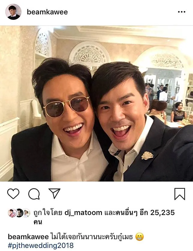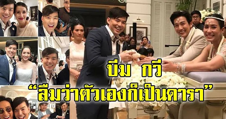 ทุกงานแต่งดารา ถือเป็นงานรวมตัวพี่น้องคนบันเทิงที่นานๆ ทีจะมีโอกาสมาเจอกันพร้อมหน้าพร้อมตา ล่าสุดก็คืองานแต่งงานสุดอบอุ่นของ พุฒ พุฒิชัย กับ จุ๋ย วรัทยา ที่มีเพื่อนพ้องน้องพี่คนบันเทิงตบเท้ามาร่วมแสดงความยินดีอย่างคับคั่ง 1 ในนั้นคือ บีม กวี ซึ่งงานนี้เจ้าตัวฉายเดี่ยว ไม่ได้ควงภรรยาสาวอย่าง ออย อฏิพรณ์ มาด้วย แต่รับรองว่าไม่มีเหงา เพราะ หนุ่มบีม ตามไปพูดคุยขอถ่ายเซลฟี่กับเหล่าดาราที่มาเป็นแขกทั่วงานเลยทีเดียว ไม่ว่าจะเป็น แท่ง ศักดิ์สิทธิ์, แอน ทองประสม, แอฟ ทักษอร, ตู่ ภพธร, ปั๊ป โปเตโต้, ดีเจมะตูม เตชินท์ และ แก้ม วิชญาณี พร้อมบรรยายแคปชั่นแต่ละรูปละเอียดยิบว่า ยืนข้างใคร นั่งข้างใคร คุยกับใคร โพสต์รูปอวดลงไอจีรัวๆ ม้วนเดียวจบภายในวันเดียว โพสต์เยอะโพสต์ถี่มากกว่าทั้งเดือนที่ผ่านมารวมกันซะอีก ยอมใจโหมดติ่งบ้าดาราของคุณเค้าจริงๆ สงสัยจะลืมตัวว่าตัวเองก็เป็นดาราเหมือนกัน โถพ่อคุณทูลหัวน่าเอ็นดู๊ววว!!