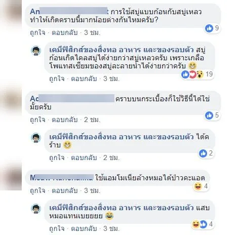 แต่ถ้าเป็นคราบหนามาก อาจจะจำเป็นต้องใช้ด่างที่ค่อนข้างแรงแต่ระเหยได้ดี อย่างพวกแอมโมเนียหรือจะใช้ “เช้าก่า” (baking ammonia, ammonium bicarbonate) ที่เป็นผงฟูสำหรับปาท่องโก๋แทนก็ได้ เพื่อให้คราบไคลสบู่นั้นถูกแทนที่จาก hardness metal ion ให้กลายเป็น ammonium soap ที่ละลายออกได้ดี โดยที่ไม่ทิ้งคราบและทำลายผิวกระจกด้วย (แต่แอบเหม็นแอมโมเนียนะเออ)
