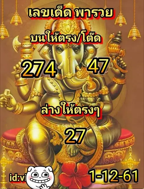 เลขเด็ด พารวย งวดวันที่ 1/12/61
