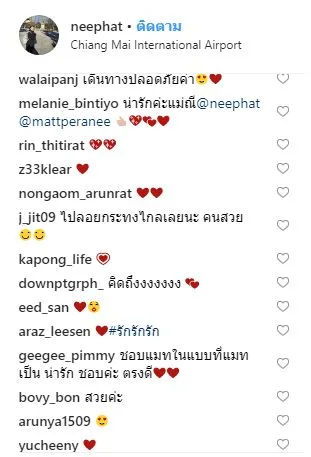 พักหลังมานี้กระแสข่าวคบกันระหว่าง แมท กับ สงกรานต์ ก็เริ่มซาลงไปเรื่อยๆ แม้ว่าไอจีของสาว แมท นั้นจะไม่มีการเคลื่อนไหวใดๆ แต่ว่าไอจีของ แม่นีย์ แม่ของสาวแมท ก็คอยอัพเดท กิจกรรมของลูกสาว ลงไอจีอยู่บ่อยๆ