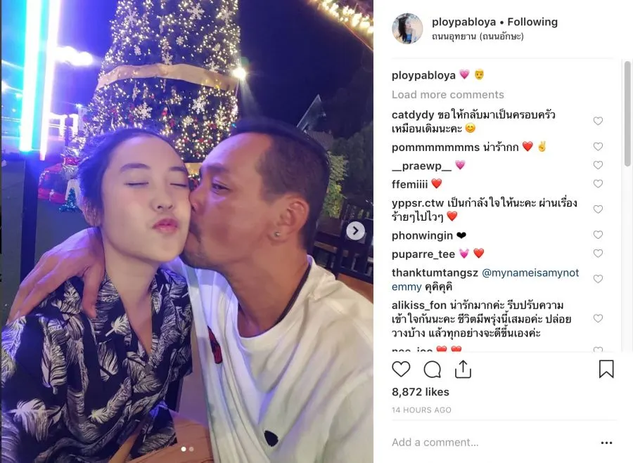 และล่าสุดทางด้าน น้องพลอยได้โพสต์ลงอินสตาแกรมส่วนตัวนั้น เท่ง เถิดเทิง ได้กอดและหอมแก้มน้องพลอยลูกสาวสุดที่รักฟอดใหญ่ด้วยความคิดถึงสุดหัวใจ