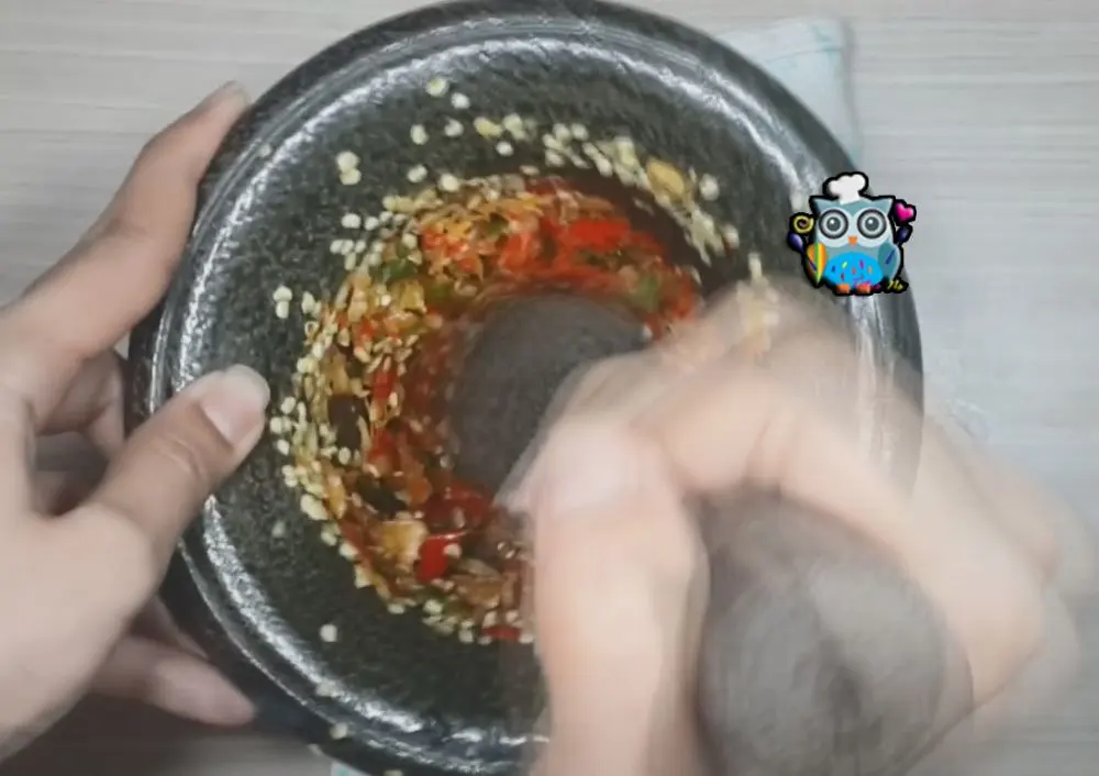 1.โขลกพริก กระเทียมพอแหลก พักไว้