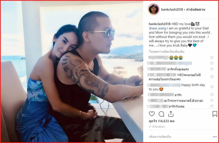 พักหลังมานี้ ก็มักจะมีภาพหวาน ๆ หลุดออกมาให้เหล่าบรรดาแฟนคลับได้ชมกันอยู่บ่อย ๆ ซึ่งล่าสุด หนุ่มแบงค์ ก็ได้ออกมาโพสต์ภาพสุดหวาน พร้อมอวยพรวันเกิดให้แฟนสาวว่า”HBD my love ase_wang I am so grateful to your Dad and Mom for bringing you into this world , fore without them you would not exist . I will always try to give you the best of me……i love you krub Baby”(สุขสันต์วันเกิดนะที่รักของผม ผมรู้สึกอยากขอบคุณพ่อแม่ของคุณที่ทำให้คุณเกิดมาบนโลกใบนี้ ถ้าไม่มีพวกเขาก็คงไม่มีคุณ ผมจะพยายามทำตัวเองให้ดีที่สุดเพื่อคุณ ผมรักคุณนะครับ) งานนี้บอกเลยทำเอาคนโสดอิจฉาตาร้อนกันเป็นแถวเลยจ้า