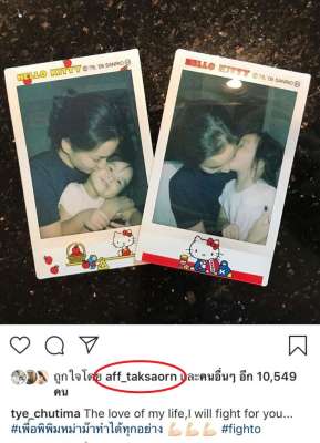 และหลังจากที่ฝ่ายชายให้สัมภาษณ์ไปนั้น ต่าย ก็ได้โพสต์รูปและข้อความลงในอินสตาแกรมของตัวเอง เป็นรูปถ่ายกับลูกสาวน้องพิพิม พร้อมแคปชั่นว่าจะสู้เพื่อลูก ทำทุกอย่างเพื่อลูกสาว ซึ่งก็มีคนเข้ามาคอมเมนต์ให้กำลังใจสาวต่ายมากมาย และ 1 ในนั้น ก็มีซิงเกิลมัมยืนหนึ่งอย่าง แอฟ ทักษอร เข้ามากดไลค์ให้กำลังใจสาวต่ายในรูปดังกล่าวอีกด้วย งานนี้ถึงจะไม่ได้คอมเมนต์แต่แค่กดไลค์ก็ทำให้สาวต่ายที่กำลังเจอปัญหาหนักมีกำลังใจเพิ่มมากขึ้นพร้อมสู้กับเรื่องราวที่รออยู่ตรงหน้าได้อย่างสบาย.