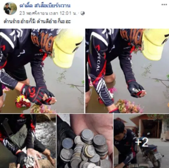 ทั้งนี้ เขาได้ไปตกปลาและเจอเหรียญเงินในกระทงที่ลอยมาติดชายฝั่ง เขาจึงลงไปเก็บอย่างไม่อายใคร ซึ่งในโลกออนไลน์ต่างก็วิพากษ์วิจารณ์คนที่ลงไปเก็บเงินในกระทง ซึ่งแต่ละคนไม่รู้วัตถุประสงค์ว่าเก็บเงินไปเพื่ออะไร อย่างเช่นขณะที่เก็บเงินในแม่น้ำมีคนมาเห็นและพยายามพูดนินทาแต่เขาก็ไม่ได้สนใจอะไร เพราะตั้งใจจะนำเงินไปถวายวัดอยู่แล้ว เพราะถ้าหากไม่เก็บขึ้นมาก็จะทำให้เหรียญจมน้ำหายสูญหายไปเปล่าๆ ยากฝากถึงคนที่นินทาคนอื่นภาพคนเก็บเงินในกระทงอย่าพึ่งตัดสินคนๆนั้นว่าเป็นคนไม่ดี