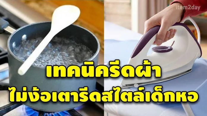 นี่เป็นวิธีโบร่ำโบราณแต่กาลก่อนกันเลยทีเดียวเชียว ตั้งแต่สมัยยังไร้เทคโนโลยีเตารีด คนเก่าคนแก่เขาก็ใช้หม้อต้มที่ทำจากโลหะนี่ล่ะ ใส่น้ำแล้วต้มให้เดือด จากนั้นเทน้ำออก ยกหม้อไปเช็ดผ้าสะอาด เพื่อเอาคราบสกปรกที่ก้นหม้อออก แล้วรีบนำไปใช้รีดด้วยก้นหม้อ