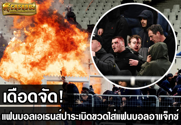 แฟนบอลเอเธนส์ปาระเบิดขวดใส่แฟนบอลอาแจ็กซ์