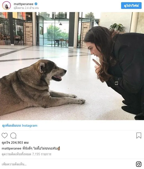 เเละล่าสุด!! “แมท ภีรนีย์” ก็ออกมาเคลื่อนไหวกลางไอจีส่วนตัว ด้วยการโพสต์ภาพคู่กับน้องหมา พร้อมแคปชั่นที่ระบุว่า “พี่นั่งดีๆ ไม่ดื้อไม่ซนนะคับ” ก่อนเธอจะลบคอมเม้นท์ชาวเน็ตที่เข้ามาด่าเธอ ทำเอาชาวเน็ตเเห่คอมเม้นท์กันสนั่น ว่าทำไมต้องลบคอมเม้นท์ด้วย รับความจริงไม่ได้หรอ ว่าเเล้วก็ตามไปอ่านคอมเม้นท์กันเลยค่ะ