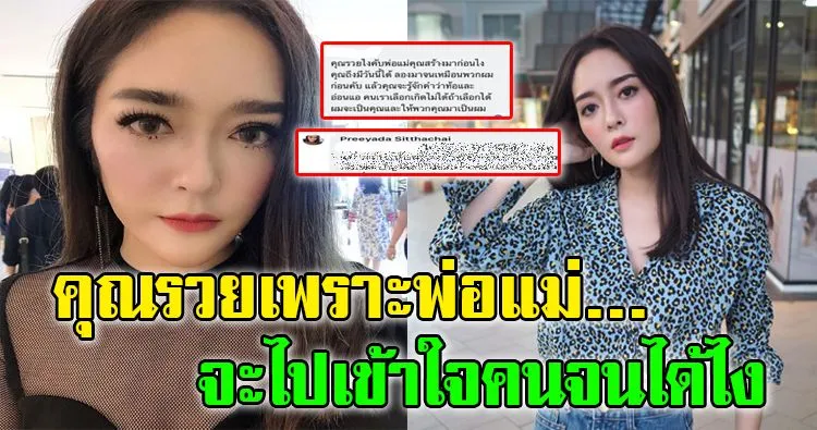 โดย สาวแก้มบุ๋ม นั้นได้โพสต์รูปภาพข้อความของชาวเน็ตรายหนึ่ง ที่เข้ามาคอมเม้นต์ถึงเรื่องการทำงานของ สาวแก้มบุ๋ม ว่า “คุณรวยไงครับ พ่อแม่คุณสร้างมาก่อนไง คุณถึงมีวันนี้ได้ ลองมาจนเหมือนพวกผมก่อนครับ แล้วคุณจะรู้จักคำว่าท้อและอ่อนแอ คนเราเลือกเกิดไม่ได้ถ้าเลือกได้ ผมจะเป็นคุณและให้พวกคุณมาเป็นผม”
