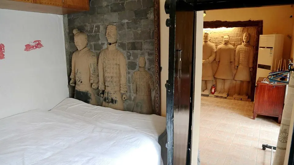 เมื่อเร็วๆ นี้ ภาพของที่พักแห่งหนึ่งในเมืองซีอาน มณฑลส่านซี ทางตะวันตกเฉียงเหนือของจีน ได้ถูกแชร์ไปทั่วโลกออนไลน์ ด้วยบรรยากาศที่พักอันเป็นเอกลักษณ์ ที่ตกแต่งด้วยกำแพงอิฐ แบบจำลองทหารดินเผา และแบบจำลองโบราณวัตถุต่างๆ