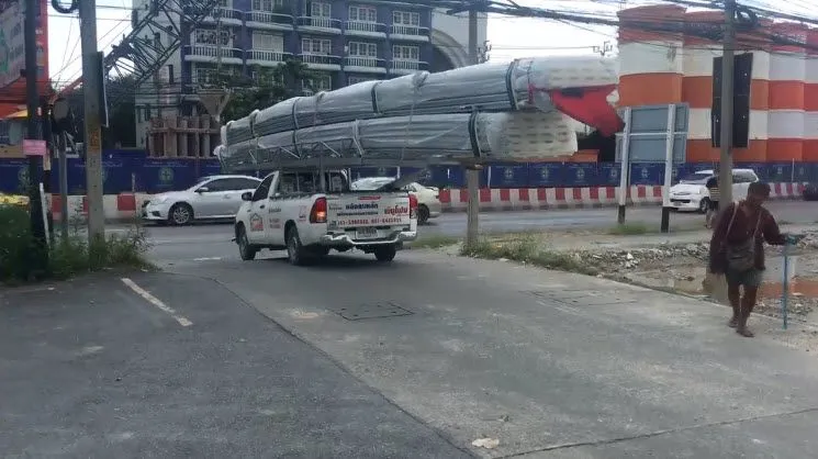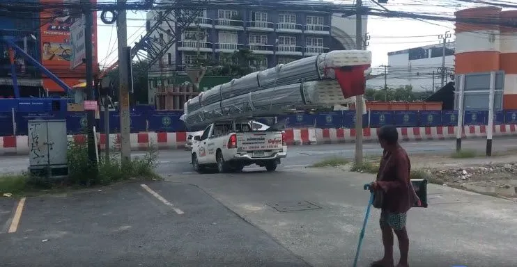 หลายคนคงเคยเห็นกันบ่อยอยู่แล้ว สำหรับรถกระบะที่บรรทุกของเกินตัว อาจจะเป็นเหตุให้เกิดอันตรายได้ ซึ่งหากเราต้องการบรรทุกสิ่งของที่มีขนาดใหญ่มากๆ หรือมีความยาวมากๆ จะต้องใช้รถที่มีขนาดใหญ่ อย่างเช่นรถหกล้อ รถสิบล้อ ไปจนถึงรถพ่วง เพื่อที่จะสามารถบรรทุกไปได้อย่างปลอดภัย แต่ในคลิปที่จะนำมาเสนอในวันนี้ เป็นรถกระบะที่บรรทุกเหล็กขนาดยาว ที่ดูแล้วน่าจะยาวกว่าตัวรถถึง 2 เท่า แถมยังหลายชิ้นและมีน้ำหนักเยอะมาก ทำให้รถต้องขับไปแบบทุลักทุเล และเหล็กแกว่งไปมาเหมือนจะหล่นลงเสียให้ได้