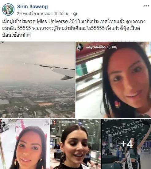 เรียกว่าเป็นควันหลงการประกวด Miss Universe 2018 ที่ประเทศไทย หลังจากเหล่าสาวงามทั้งหลายพากันเช็คอินร้านซีฟู๊ดแห่งหนึ่ง ซึ่งผู้ใช้เฟซบุ๊กที่ชื่อว่า Sirin Sawang ได้แคปภาพเหล่านั้นพร้อมกับแชร์ลงในเฟซบุ๊กตัวเอง ระบุว่า