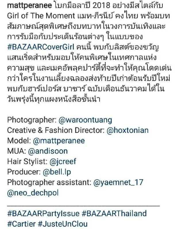 เล่นเอาสาวแมทเหน็ดเหนื่อยและคับข้องใจสุด? ดูได้จากการตอบคอมเม้นใต้ภาพ โปรโมทแฟชั่นที่เธอถ่ายให้กับนิตยสารหัวนอกชื่อดังก้องโลกอย่าง Harper’s Bazaar ประเทศไทย เพราะแมทถึงขั้นบอกว่า