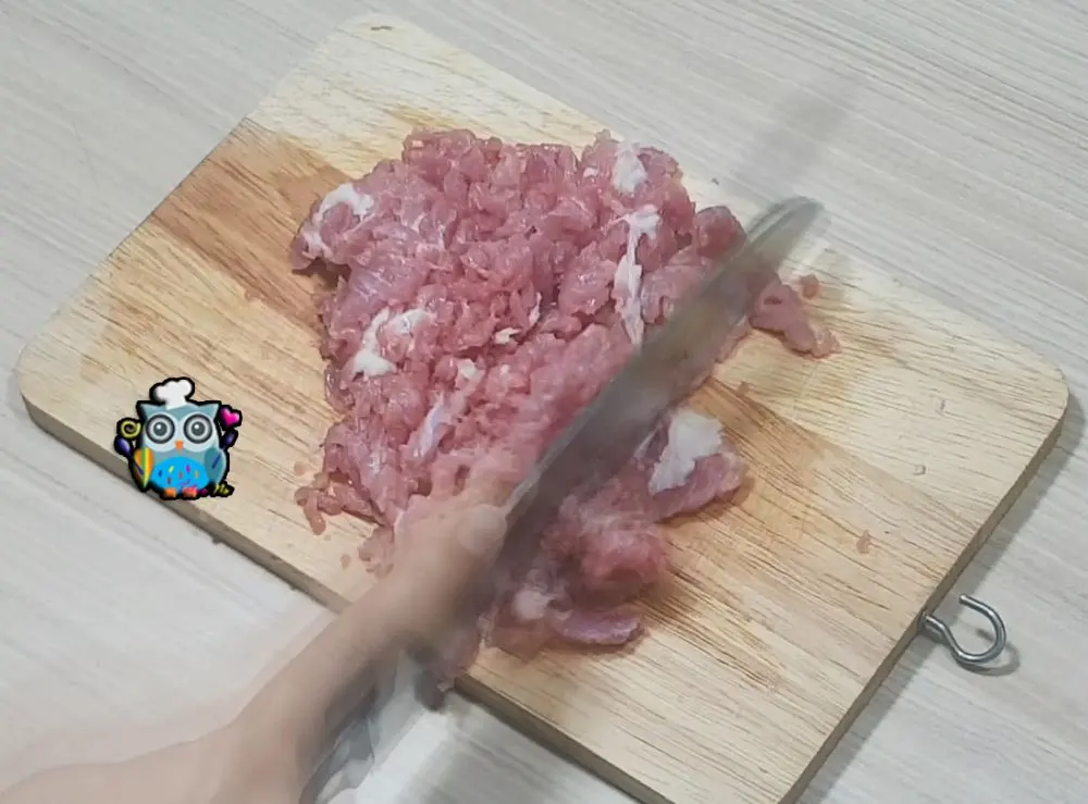 1.หั่นเนื้อวัวแล้วสับพอหยาบๆ ไม่ต้องให้ละเอียด พักเตรียมไว้