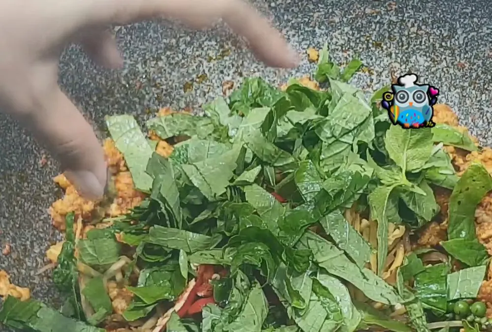 ผัดคลุกเคล้าพอให้ใบยี่หร่าสลด