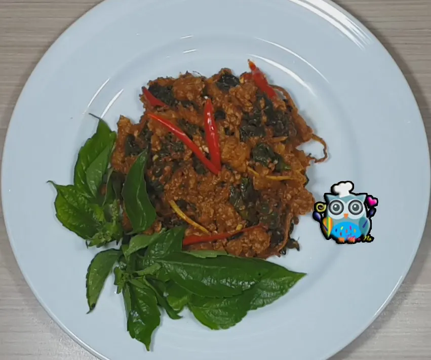 ใส่กระชายซอย พริกไทยอ่อนเป็นช่อๆและแบบเม็ด ใบยี่หร่า พริกแดง