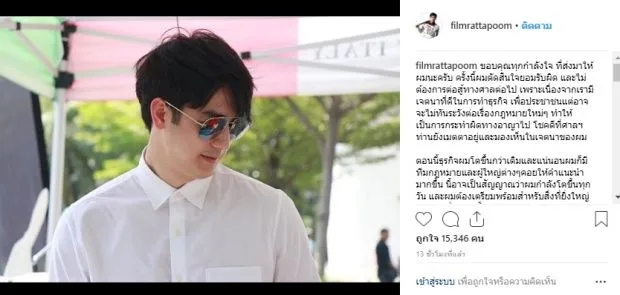 “ฟิล์ม รัฐภูมิ” โพสต์ชี้แจง เหตุใดจึงยอมรับผิดและไม่สู้คดีต่อ