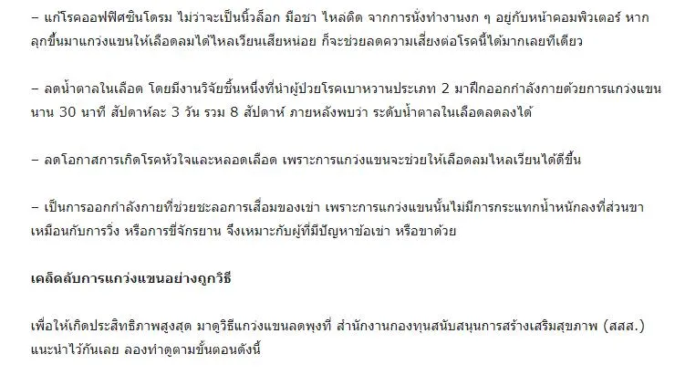 เห็นประโยชน์ดี ๆ แบบนี้แล้ว ก็ต้องลองลุกขึ้นมาแกว่งแขนกันสักหน่อยแล้วล่ะ เพราะเป็นการออกกำลังกายที่ทำได้ง่ายมาก ๆ ยืนดูทีวีไป ก็แกว่งแขนตามไปด้วยก็ได้ ร่างกายจะได้ขยับ ช่วยเผาผลาญแคลอรี่ออกไปบ้าง ดีกว่าอยู่เฉย ๆ แถมถ้าแกว่งแขนต่อเนื่องเป็นประจำทุกวัน คุณจะตื่นตากับผลลัพธ์ที่ได้รับแน่นอน